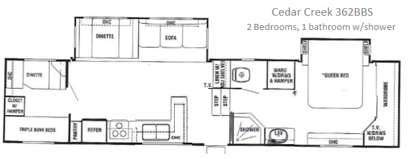 For rent is our 39 foot fifth wheel trailer with bunk house (2nd bedroom). Rent a campsite and enjoy this large comfortable trailer. Or use it on your property for house guests, or as temporary housing.